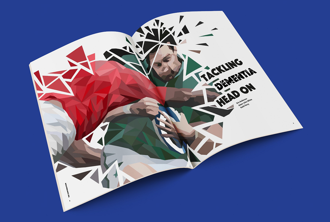 This is an editorial design project for a magazine article about early onset dementia, concussion and tackling in children’s rugby. The brief stated to use an article of your choice and create a series of magazine spreads to represent the article and its information.