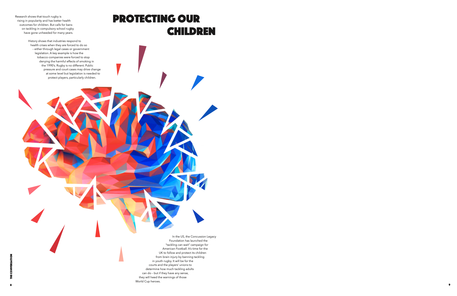 Brief: Create 4 magazine spreads using an article from The Conversation.